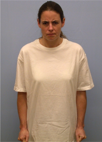 Neutral confederates stood relaxed, did not raise or lower their heads and did not smile or frown.